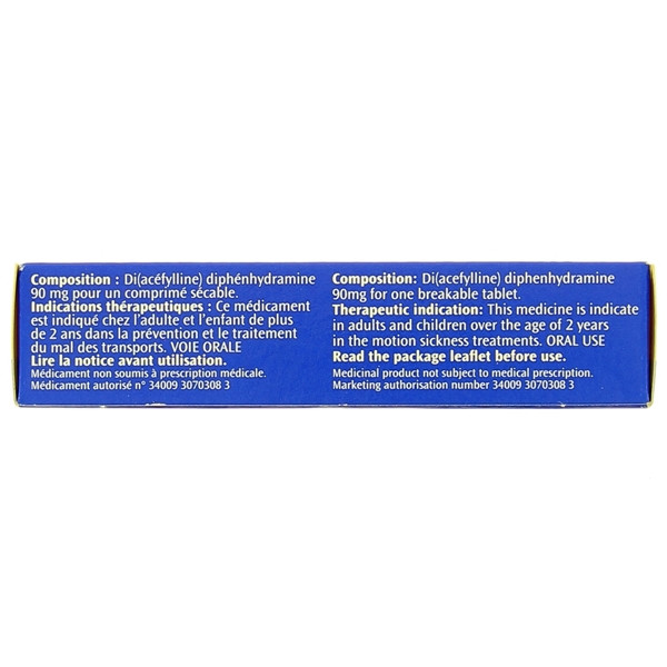Ce médicament doit être pris avec un peu d'eau, une demi-heure avant le départ. La prise peut éventuellement être renouvelée au cours du voyage, en respectant un intervalle de 6 heures.