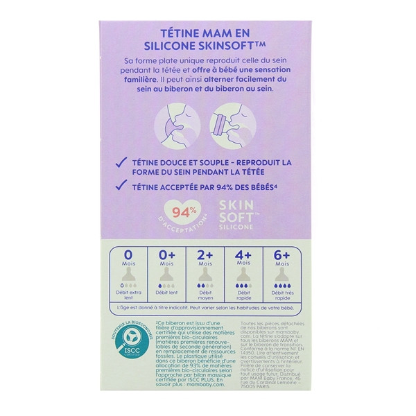 Disponible en boîte de 1 biberon océan de 160 ml, débit lent.