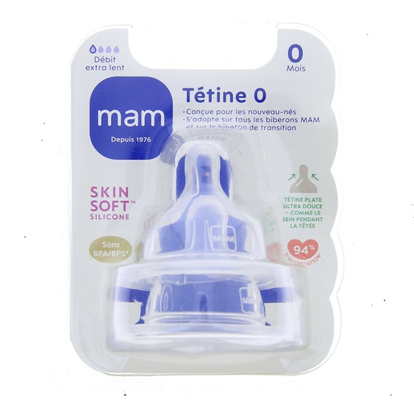 Les Tétines MAM débit 0, proposées par les laboratoires MAM ont été spécialement développé pour les nouveau-nés. Elles sont conçues en silicone ultra doux comme la peau afin d'offrir une sensation familière.