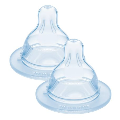 La forme plate de la tétine reproduite la forme du sein pendant la tétée et s'adapte parfaitement à la bouche du nouveau-né.
