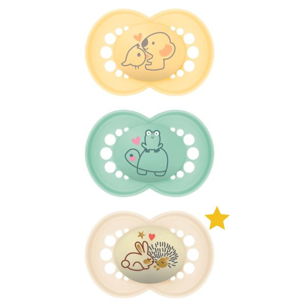 Si vous cherchez une solution pour des nuits paisibles, la sucette Original en Silicone MAM spécial nuit, qui est présente dans ce trio, est faite pour vous. Elle est conçue pour briller dans l’obscurité grâce à son bouton phosphorescent, ce qui la rend facile à repérer dans la chambre de bébé. D’un autre côté, elle est réputée pour apaiser et calmer bébé, lui procurant une sensation de réconfort.