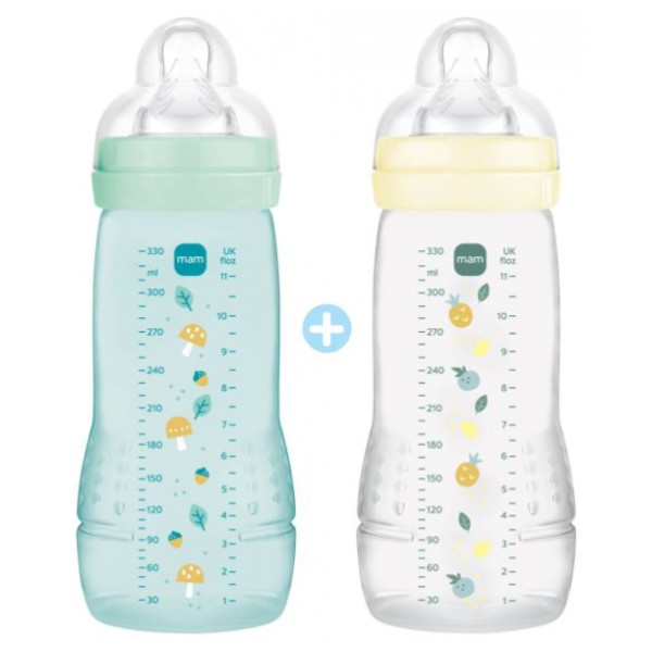 Easy Active 2e âge Biberons Ice + Pearl 2x330ml de la marque Mam est un lot de 2 biberons conçu pour les bébés actifs et dynamiques, à partir de 6 mois. Leur design a été pensé pour les rendre faciles à tenir et à manipuler afin de simplifier leur utilisation par les nourrissons et par les parents.