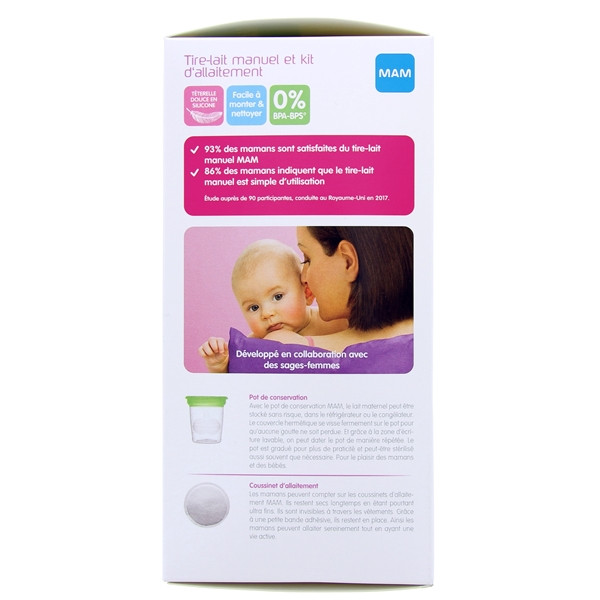 La marque MAM propose le tire-lait manuel et le kit d'allaitement pour offrir douceur, efficacité et autonomie maximales pour les mamans allaitantes. Ce pack est idéal pour la maison et pour les déplacements.