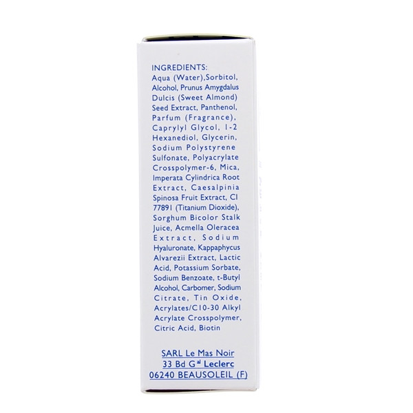 Aqua (Water), Sorbitol, Alcohol, Prunus Amygdalus Dulcis (Sweet Almond) Seed Extract, Panthenol, Parfum (Fragrance), Caprylyl Glycol, 1-2 Hexanediol, Glycerin, Sodium Polystyrene Sulfonate, Polyacrylate Crosspolymer-6, Mica, Imperata Cylindrica Root Extract, Caesalpinia Spinosa Fruit Extract, CI 77891 (Titanium Dioxide), Sorghum Bicolor Stalk Juice, Acmella Oleracea Extract, Sodium Hyaluronate, Kappahycus Alvarezii Extract, Lactic Acid, Potassium Sorbate, Sodium Benzoate, T-Butyl Alcohol, Carbomer, Sodium Citrate, Tin Oxide, Acrylates/C10-30 Alkyl Acrylate Crosspolymer, Citric Acid, Biotin.