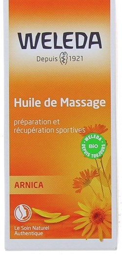 Formulée à partir d'une association d'extraits d'arnica Bio, d'huile de tournesol Bio, d'huile d'olive Bio et d'extrait de feuille de bouleau Bio, l'huile de massage à l'arnica de la marque Weleda facilite aussi bien la préparation que la récupération sportive. Elle convient à l'usage des sportifs avérés comme à l'utilisation des « sportifs occasionnels ».