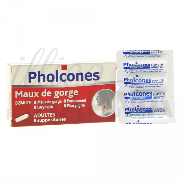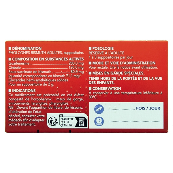 Pholcones Bismuth suppositoire adultes est disponible en boîte de 8 suppositoires.