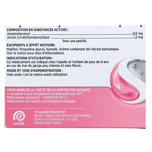 Pastilles sans sucre : comme tous les médicaments et confiseries contenant des sucres non absorbables (sorbitol, maltitol...), possibilité de diarrhée en cas d'apport important.