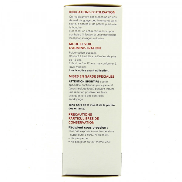 Évitez l'usage de ce médicament avant les repas : l'anesthésique local est susceptible de provoquer des troubles de la déglutition ; ceux-ci pourraient être à l'origine du passage d'aliments dans les voies respiratoires.