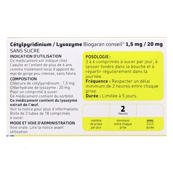 Cétylpiridinium/Lysosyme sans sucre x36 Biogaran C