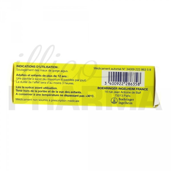 Le médicament Lysopaïne peut être pris pour soigner le mal de gorge aigu. Au goût citron, Lysopaïne est un médicament sans ordonnance. L'achat en ligne de Lysopaïne doit se faire après avoir pris connaissance de la notice. Si votre mal de gorge persiste, un médecin doit être consulté pour obtenir son avis. Notre pharmacie en ligne vous propose le médicament Lysopaïne en boîte de 18 pastilles