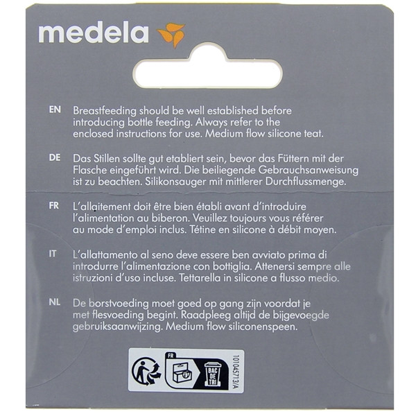 Pour la santé de votre bébé, retrouvez les tétines de remplacement Standard 2ᵉ âge à débit moyen de MEDELA.