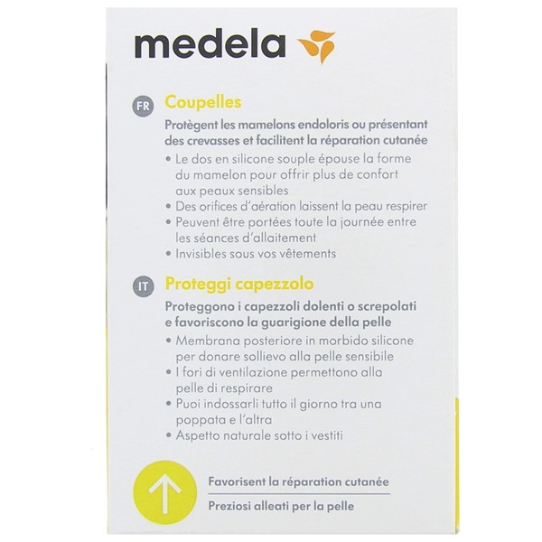 Les Coupelles Protège-Mamelons du laboratoire Medela protègent efficacement les mamelons endoloris ou présentant des crevasses. De plus, elles facilitent la réparation cutanée.