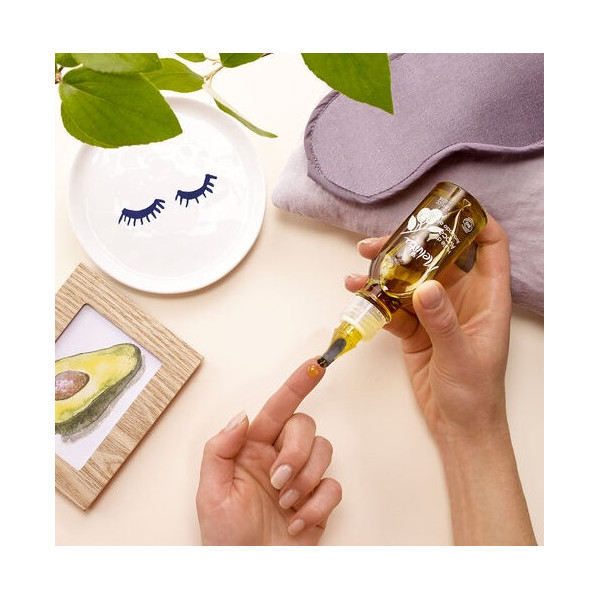 L’Huile d’Avocat Bio 50ml de la marque Melvita est un soin tenseur et réparateur pour le visage, notamment le contour des yeux afin d’estomper les ridules. Elle peut aussi être utilisée pour le cou et en prévention de l’apparition de vergetures.