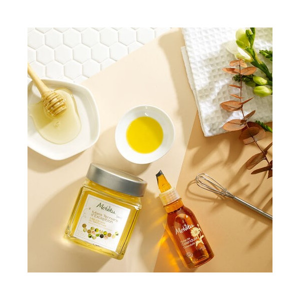 - Visage : appliquer quelques gouttes de l’Huile de Calendula Melvita à l’aide des mains. Masser délicatement jusqu’à complète absorption par le derme.