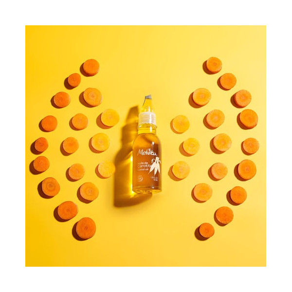 - Visage : déposer quelques gouttes de Melvita Huile de Carotte dans la main et appliquer sur le visage à l’aide des mains. Masser doucement jusqu’à absorption complète.