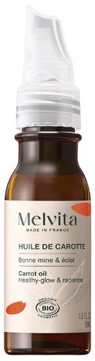 - Visage : déposer quelques gouttes de Melvita Huile de Carotte dans la main et appliquer sur le visage à l’aide des mains. Masser doucement jusqu’à absorption complète.