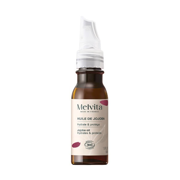 L’Huile de Jojoba Bio 50ml de Melvita répare et hydrate le visage et le corps, quel que soit le type de peau. Elle peut également être utilisée pour revitaliser les cheveux secs et cassants.