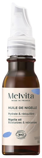 - Visage : appliquer quelques gouttes de Melvita Huile de Nigelle Bio sur la peau légèrement humidifiée. Masser doucement jusqu’à absorption par le derme.