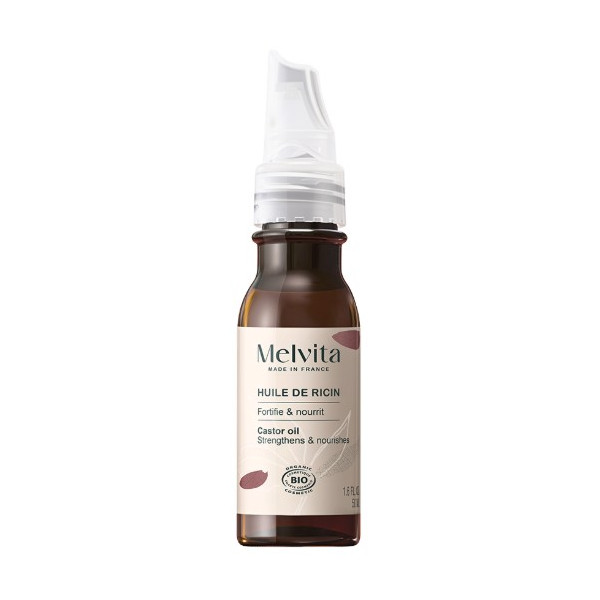 L'Huile de Ricin Bio de la marque Melvita est indiquée pour réparer, fortifier et protéger les ongles, les cils et les cheveux.