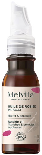 L'Huile de Rosier Muscat Bio de Melvita est extraite par première pression à froid des graines du cynorhodon, le fruit de la rose musquée. Cette méthode de fabrication préserve la richesse et l'intégrité des actifs de l'huile et garantit une qualité optimale. Elle est issue de l'agriculture biologique et ne contient aucun ingrédient chimique ou synthétique, ni d’origine animale.