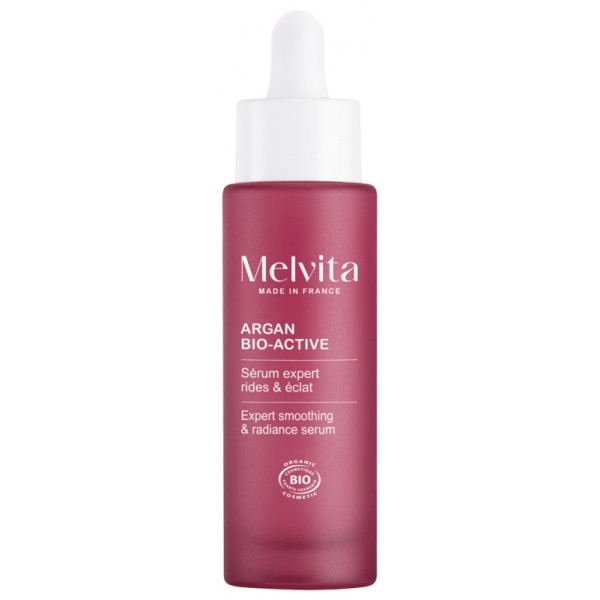 Argan Bio-Active Sérum Expert Rides & Éclat Bio de la marque Melvita contribue à prévenir et réduire l'apparence des rides, à raffermir la peau et à raviver l'éclat. Ce sérum convient à tous les types de peau et à partir de 25 ans pour prévenir les signes de l'âge.