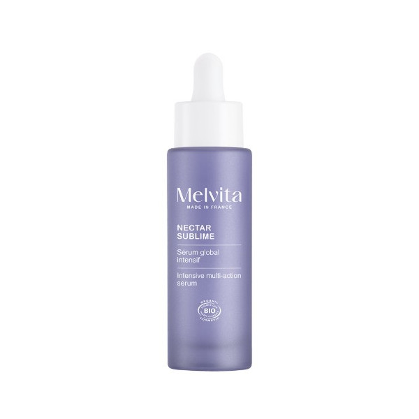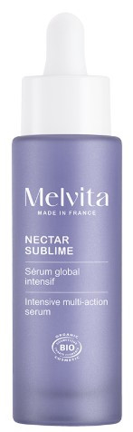 Nectar Sublime Sérum Global Intensif Bio de la marque Melvita est un soin anti-âge global qui agit sur les principaux marqueurs de l'âge. Il contribue à redessiner les contours du visage, à lisser et réduire les rides et à estomper les taches liées aux vieillissement de la peau. Ce sérum convient à tous les types de peaux.