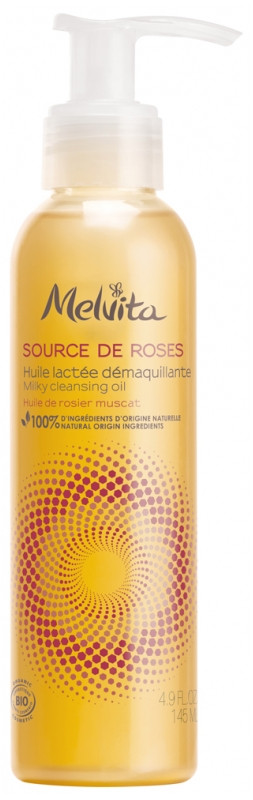 Source de Roses Huile Lactée Démaquillante Bio de la marque Melvita élimine toutes les impuretés et les traces de maquillage sans laisser un film gras sur la peau. De plus, elle hydrate et protège la peau contre les agressions extérieures. Cette huile démaquillante convient à tous les types de peaux.