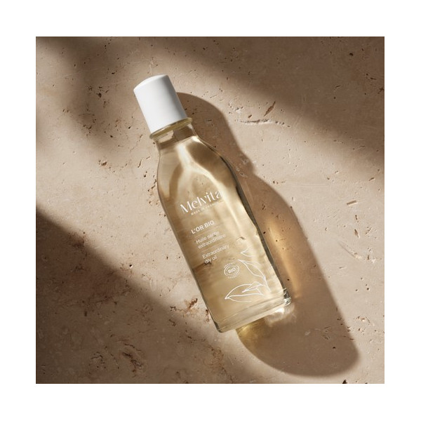 L’Or Bio Huile Sèche Extraordinaire a été spécialement conçu pour hydrater et pour illuminer la peau tout en la sublimant. Cette huile de la marque Melvita permet également de nourrir en profondeur et d’embellir les cheveux. En un seul geste, elle nourrit intensément l’épiderme, la rendant plus douce, plus soyeuse et plus satinée. Les cheveux pour leur part sont immédiatement nourris et brillants.