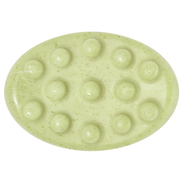 Passez le savon sous l’eau tiède pour le faire mousser. Frottez doucement le savon directement sur la peau humide en mouvements circulaires, en insistant sur les zones rugueuses (coudes, genoux, talons). Rincez abondamment à l’eau claire. Vous pouvez vous servir de ce produit deux à trois fois par semaine.