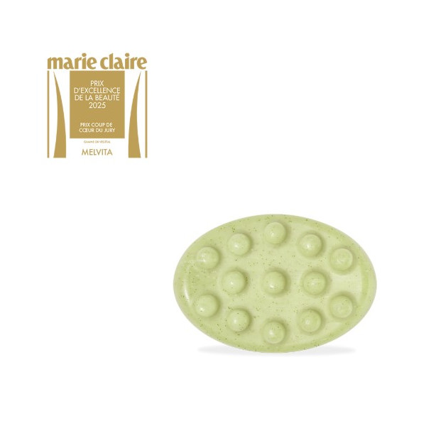 L'Or Végétal Savon Exfoliant Lissant Corps Bio de la marque Melvita est destiné aux peaux sèches ou déshydratées. Ce savon nettoie et exfolie en douceur la peau pour éliminer les cellules mortes, renouveler les cellules, affiner le grain de peau, et lisser et adoucir la peau.