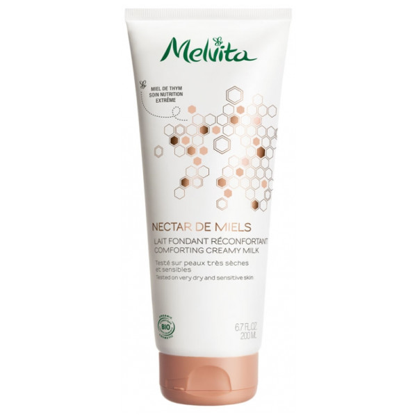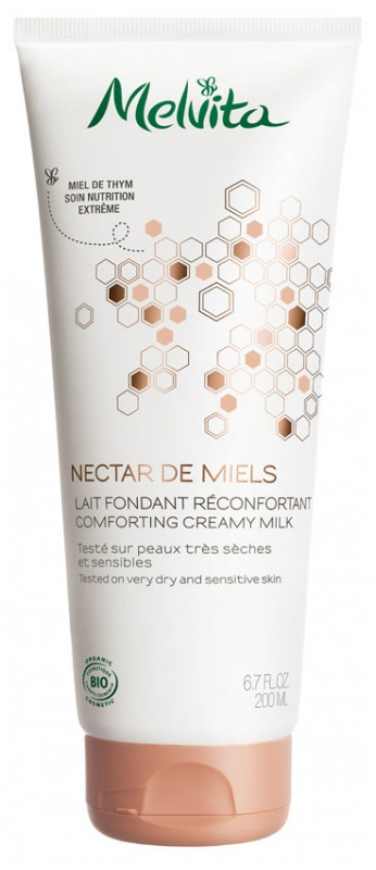 Nectar de Miels Lait Fondant Réconfortant Corps Bio de la marque Melvita est un indispensable pour les peaux sèches, très sèches et sensibles. Ce lait hydrate, nourrit, apaise et répare la peau en profondeur pour retrouver un réel confort cutané.