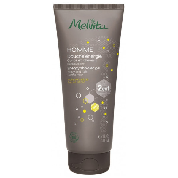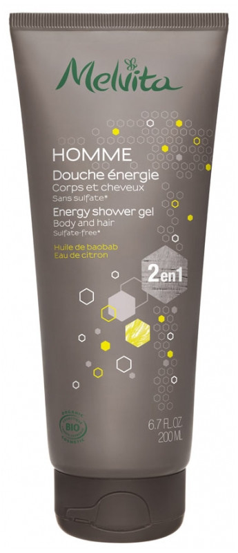 Homme Douche Énergie 2en1 Corps et Cheveux Bio de la marque Melvita est la combinaison d'un gel douche et d'un shampooing énergisants pour homme dans un tube. Il nettoie la peau et les cheveux en douceur tout en les rendant doux et brillants.