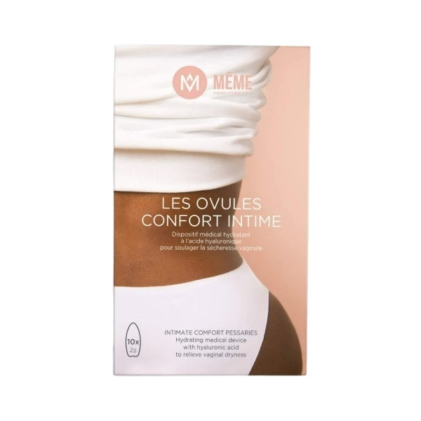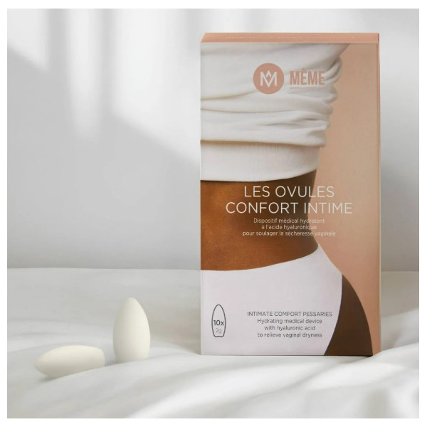 Dispositifs médicaux de la marque Même, ces ovules vaginaux servent à soulager la sécheresse vaginale, les atrophies vaginales et les inconforts intimes. Ces ovules sont formulés sans hormones pour une haute tolérance et pour une utilisation sans risque.