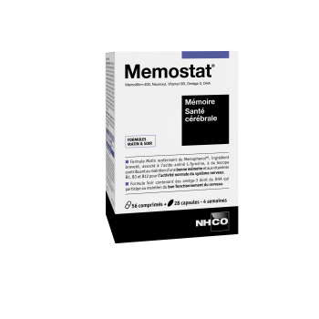 Pour limiter l’accélération de ce processus, il est recommandé d’adopter une hygiène de vie et une alimentation saines et de faire travailler au quotidien son système cérébral. MEMOSTAT® renferme deux formules de micronutrition élaborées par les Laboratoires NHCO Nutrition®, pour le maintien des fonctions cognitives normales.