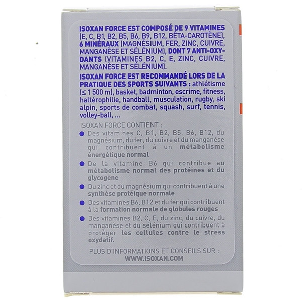 - Isoxan Sport Force est un complément alimentaire qui ne doit pas être utilisé comme substitut d’un régime alimentaire varié et équilibré.