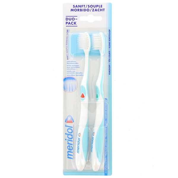La brosse à dents Protection Gencives Souple en duo-pack de la marque Meridol est conçue pour préserver une bonne santé bucco-dentaire particulièrement pour les personnes ayant les gencives irritées et fragiles.