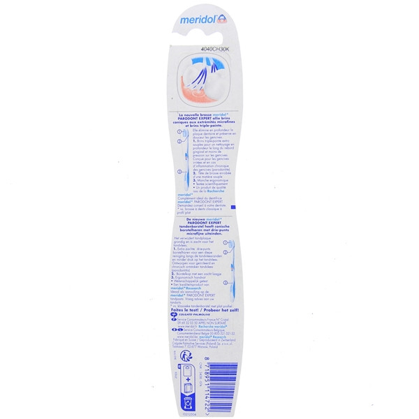 La Brosse à dents Parodont Expert Extra Souple x1 a été développée par la marque Meridol pour éliminer aisément la plaque dentaire et pour se prémunir des maladies gingivales, notamment de la parodontite.