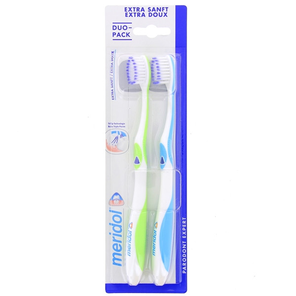 La brosse à dents Parodont Expert Extra Souple de Meridol a été spécialement conçue pour les gencives irritées et en cas d'inflammation chronique des gencives (parodontie). Cette brosse à dents nettoie 10 fois plus en profondeur avec moins de pression.