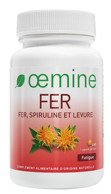Le complément alimentaire Oemine Fer est destiné à compléter l’apport en fer dans l'organisme. Grâce à une formule associant levure et spiruline, l'organisme absorbe et tolère bien le fer. Les acides aminés et le fer contenus dans la spiruline permettent de compléter les besoins en fer. Le complément alimentaire Oemine Fer est conseillé pour les femmes enceintes et allaitantes, pendant les menstruations, pour les jeunes en période de croissance et il est très utile chez les sportifs. Toutefois, le complément alimentaire OEMINE Fer ne se substitue pas à une alimentation équilibrée et variée.
