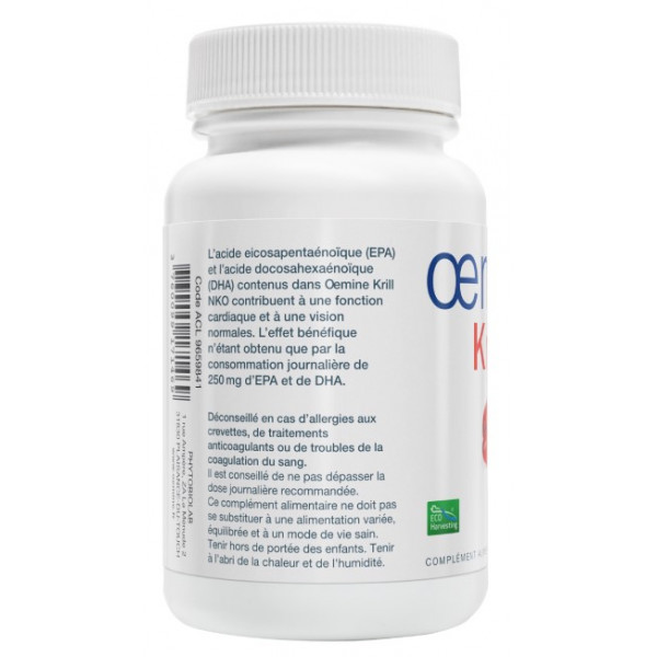 L'association de la nouvelle génération d’oméga-3 EPA/DHA aux phospholipides et à l'huile de Krill NKO confère au complément alimentaire Oemine Krill NKO, ses remarquables vertus antioxydantes. Il contribue aussi à une fonction cardiaque et à une vision normales. De plus, Ces actifs participent aussi à la réparation des membranes des cellules.