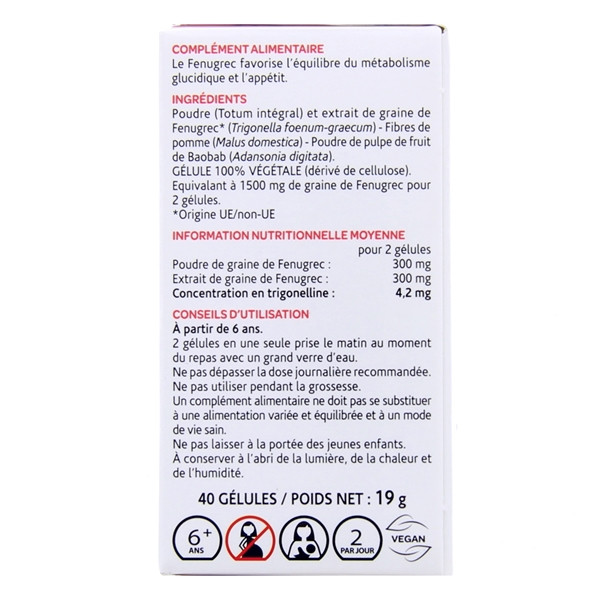*Équivalant à 1500 mg de graine de Fenugrec pour 2 gélules.