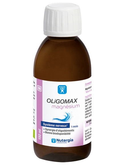 Le complément alimentaire Oligomax Magnésium est un produit élaboré par le laboratoire Nutergia. Ce complément alimentaire est formulé à partir d'une association d'algues rouges provenant des profondeurs marines, de lithothamne, de minéraux et d'oligoéléments d'eau de mer. Enrichi en magnésium, le complément alimentaire Oligomax Magnésium assure le bon fonctionnement du système nerveux. Le magnésium contribue également à réduire la sensation de fatigue. Ce complément alimentaire ne contient ni alcool, ni édulcorants, ni sucre, ni arôme artificiel.