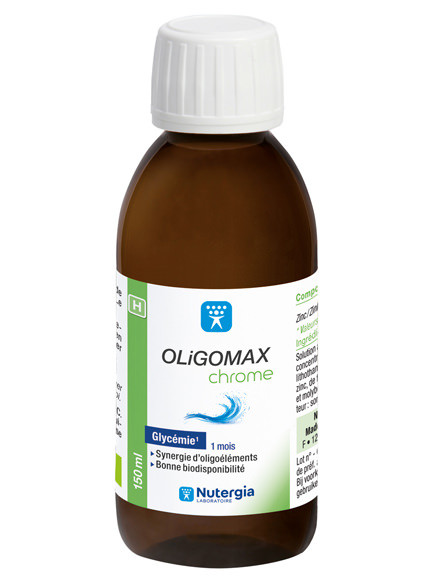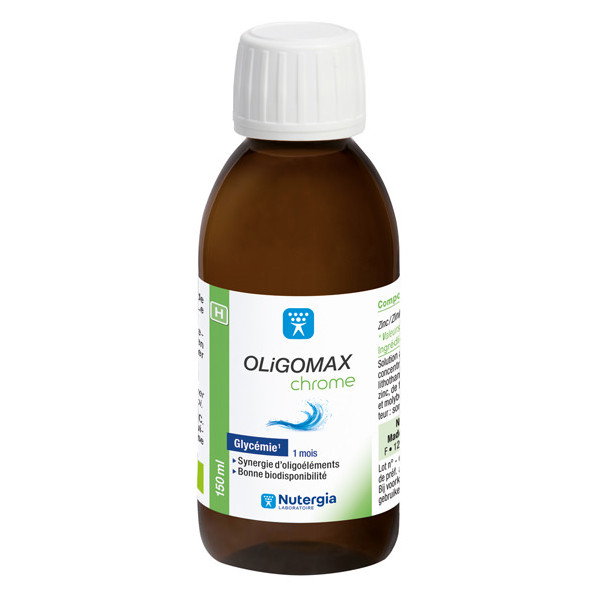 Le chrome, principal constituant du complément alimentaire Oligomax Chrome, favorise le métabolisme des graisses et des sucres. Disponible en flacon de 150 ml.
