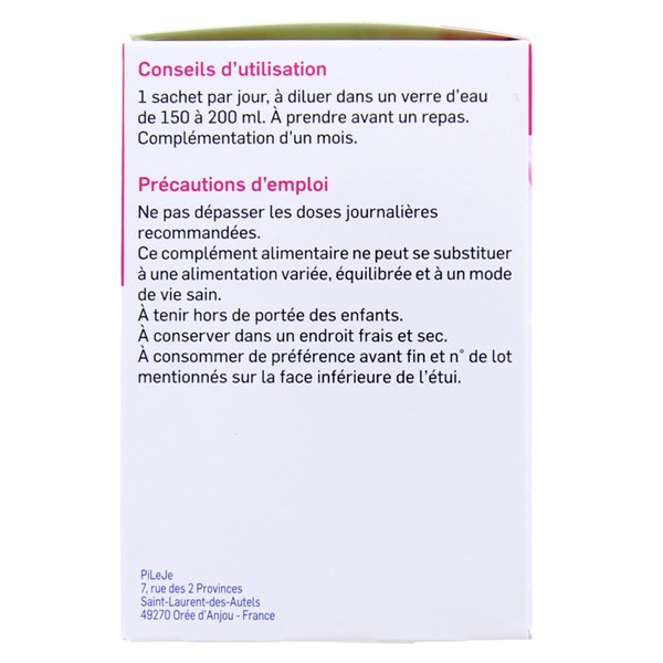 1 sachet par jour, à diluer dans un verre d’eau de 150 à 200 ml. À prendre avant un repas.