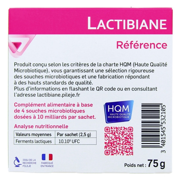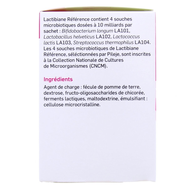 Lactibiane Référence est un complément alimentaire formulé avec 4 souches microbiotiques dosées à 10 milliards par sachet, rigoureusement sélectionnées pour leurs effets physiologiques et leur totale innocuité :