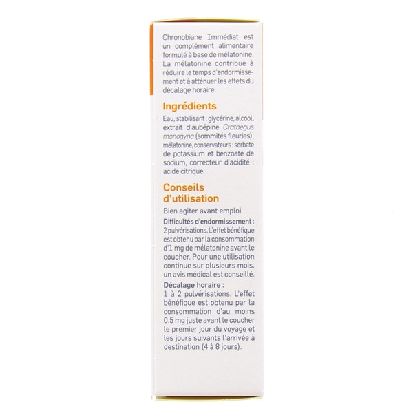 C’est là qu’intervient le complément alimentaire Chronobiane Immédiat. À base de mélatonine et d’extrait d’aubépine, il resynchronise l’horloge biologique du corps de sorte à rectifier les retards de phase de sommeil.