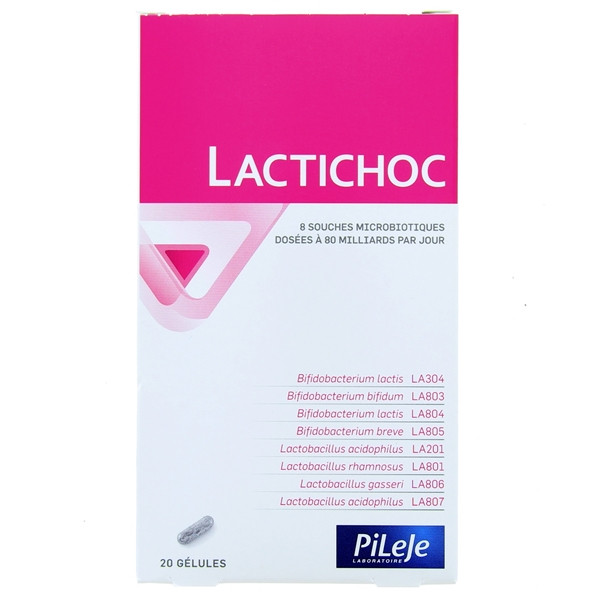 Lactichoc 20 Gélules est un complémentaire développé par la marque PiLeJe pour renforcer la bonne fonction des intestins, lutter contre les troubles digestifs et rééquilibrer l’ensemble de la flore intestinale. Ce complément alimentaire est fabriqué à partir de 8 souches microbiotiques triées pour leur capacité à renforcer la flore intestinale. Ces souches ont été spécialement sélectionnées pour les raisons suivantes :