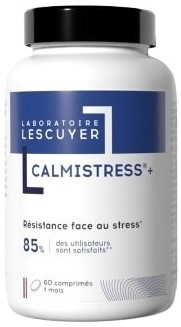 Le complément alimentaire Calmistress+ du Laboratoire Lescuyer est indiqué en cas de stress chronique, de tensions nerveuses, de difficulté à retrouver la sérénité, ainsi qu'en cas d'émotivité et d'irritabilité liées au stress.