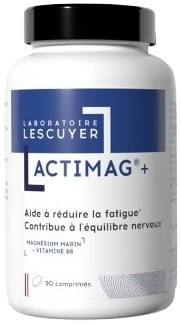 Le complément alimentaire Actimag+ du Laboratoire Lescuyer est indiqué en cas de fatigue ponctuelle, de stress et de crampes. Il aide à réduire la fatigue, participe à l'équilibre nerveux, maintient une fonction musculaire normales et contribue à la santé osseuse.