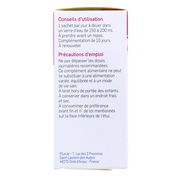 1 sachet par jour, à diluer dans un verre d’eau de 150 à 200 ml. À prendre avant un repas.